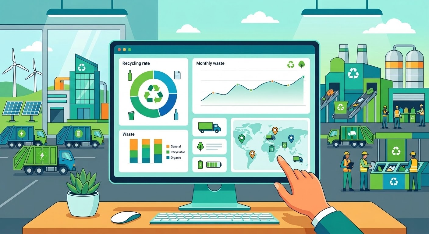 - Tableaux de bord analytiques : indicateurs de performance environnementale, suivi des coûts, taux de valorisation et identification des axes d’amélioration.