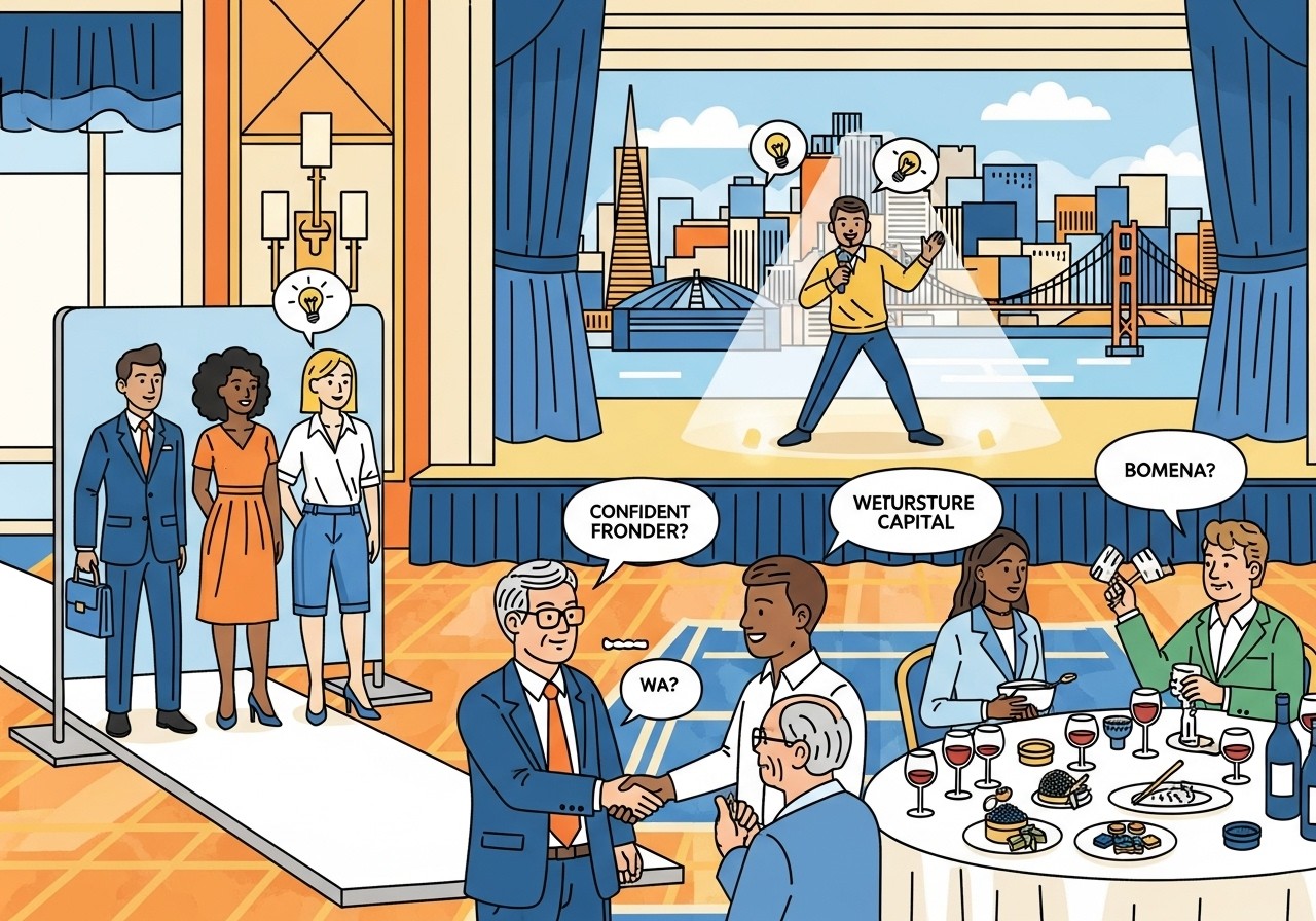 Ce n’est pas anodin que l’événement ait eu lieu au Four Seasons, symbole de luxe discret au milieu des gratte-ciel de la Bay Area. L’atmosphère feutrée contrastait avec l’énergie brute des hackathons habituels, invitant les participants à une introspection bienvenue. Parmi les thèmes abordés : la poignée de main parfaite, un art subtil qui transmet confiance et assurance en quelques secondes ; l’art oratoire pour captiver un auditoire lors de pitches ; et même les codes de l’étiquette de bureau, essentiels pour gérer des équipes hybrides dans l’ère post-pandémie. Mais le clou du spectacle ? Un défilé de mode improvisé, où des mannequins ont présenté des tenues adaptées à divers contextes – du casual Friday au gala de levée de fonds. Et pour couronner le tout, une leçon sur l’appréciation du caviar et du vin, rappelant que les deals se scellent souvent autour d’un verre.