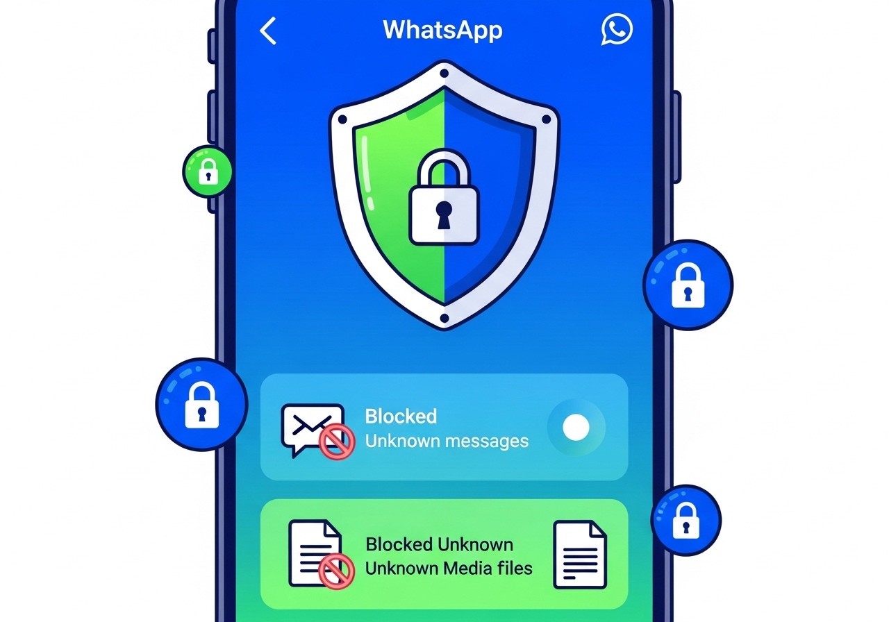 - Blocage automatique des médias, pièces jointes et documents envoyés par des numéros non enregistrés dans vos contacts.